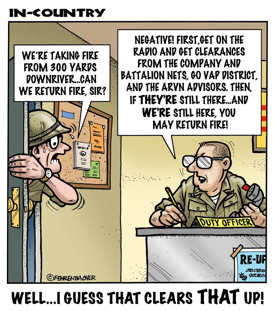 Phil enlisted in the Army in 1965 where he served for years in Vietnam. He became a graphic designer and has worked for the state of Oregon for 26 years. He retired in 2003 and started the Cartoon "In-Country". The cartoons reflect his experiences during his tour of duty in South Vietnam.