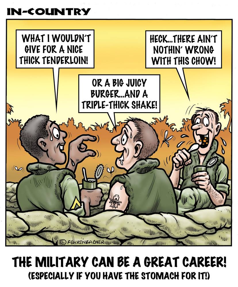 Phil enlisted in the Army in 1965 where he served for years in Vietnam.  He became a graphic designer and has worked for the state of Oregon for 26 years.  He retired in 2003 and started the Cartoon "In-Country".  The cartoons reflect his experiences during his tour of duty in South Vietnam.